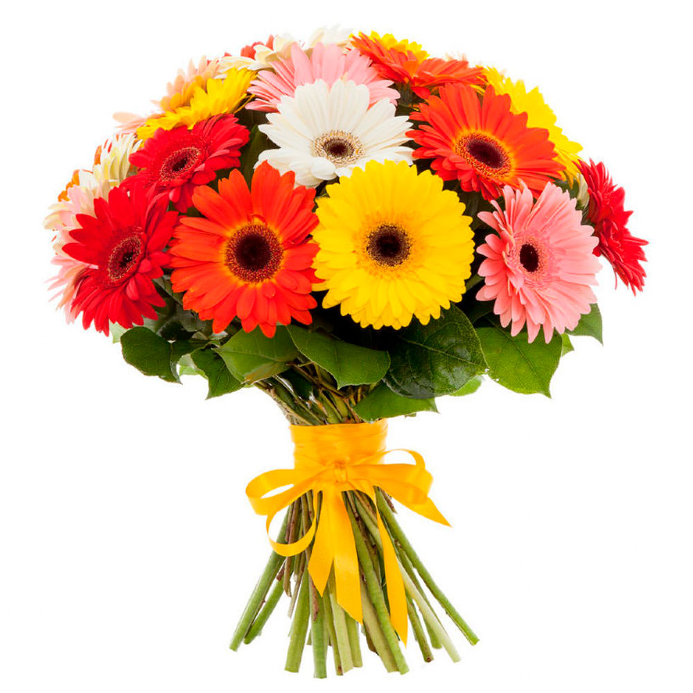Герберы красные, желтые, белые, розовые, оранжевые.