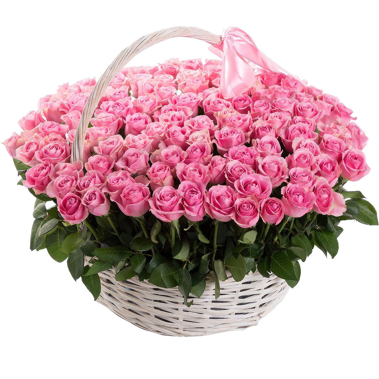 Роза одноголовая розовая. Упаковка (Корзина, оазис, ящик).