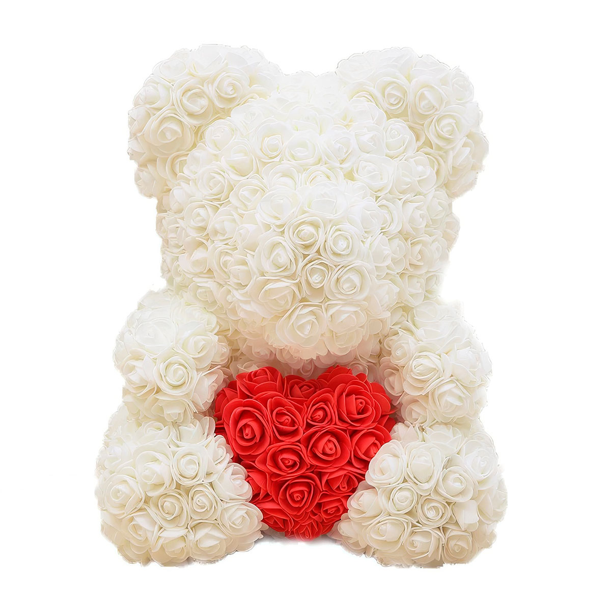 Мишка из роз бежевый с красным сердцем (40 см) с доставкой по г Мирный (Архангельская обл): вы можете купить подарок в интернет магазине «Флормания» по цене за 5000 руб.