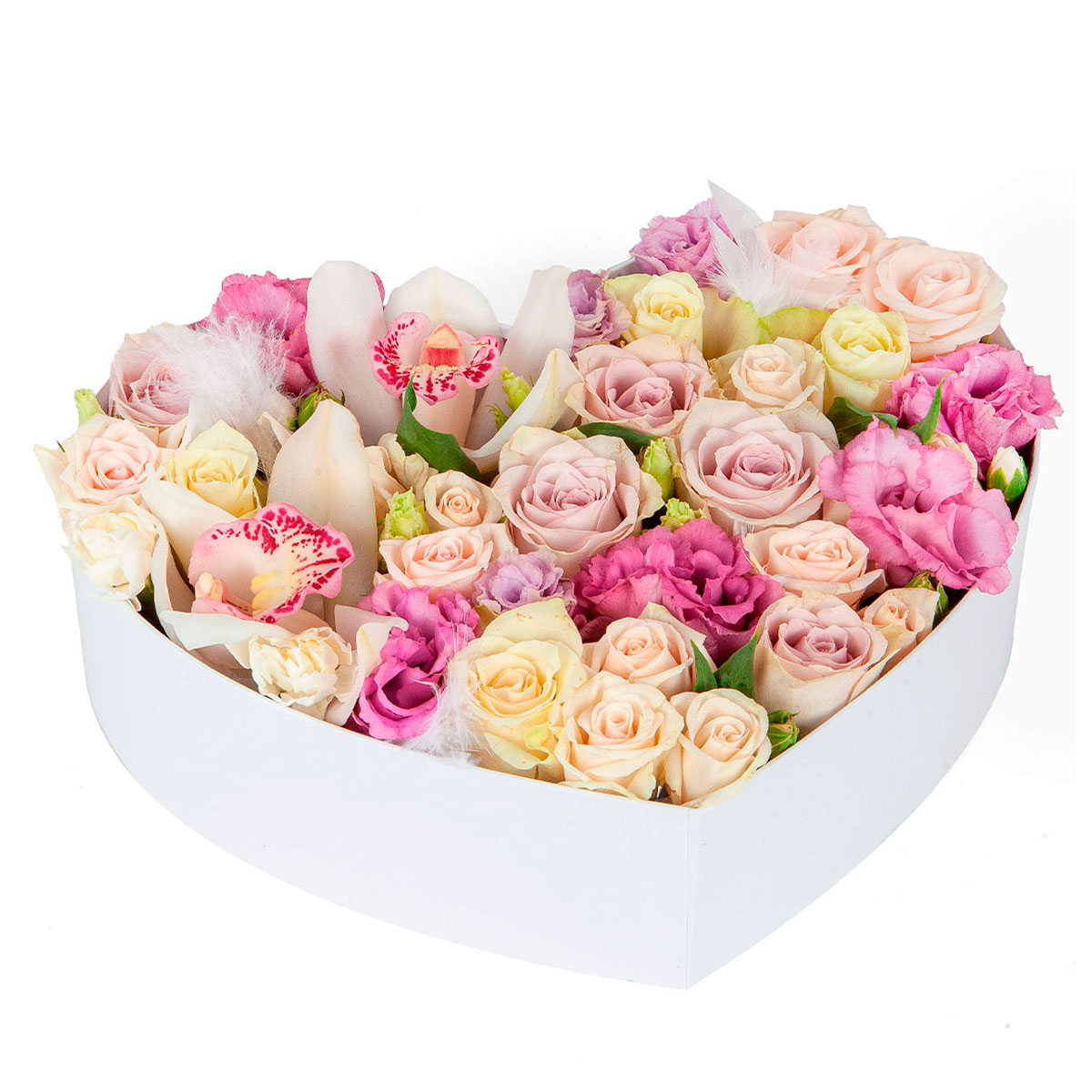 Цветы в коробке «Нежный флер» с доставкой по г Мирный (Архангельская обл): вы можете заказать букет в цветочном салоне «Флормания» по цене от 2990 руб.