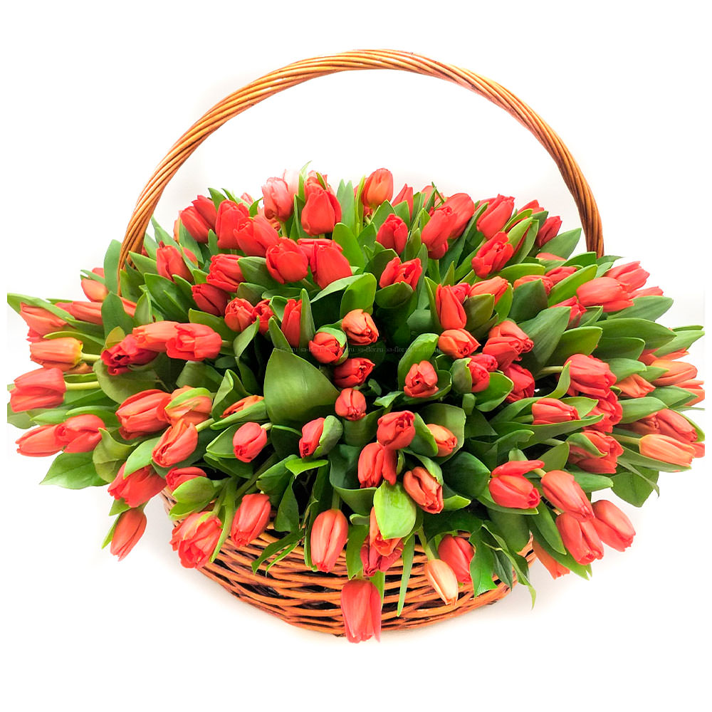 Цветы в корзинке «Красные тюльпаны» с доставкой по г Мирный (Архангельская обл): вы можете купить букет в гипермаркете цветов «Флормания» по цене от 3590 руб.