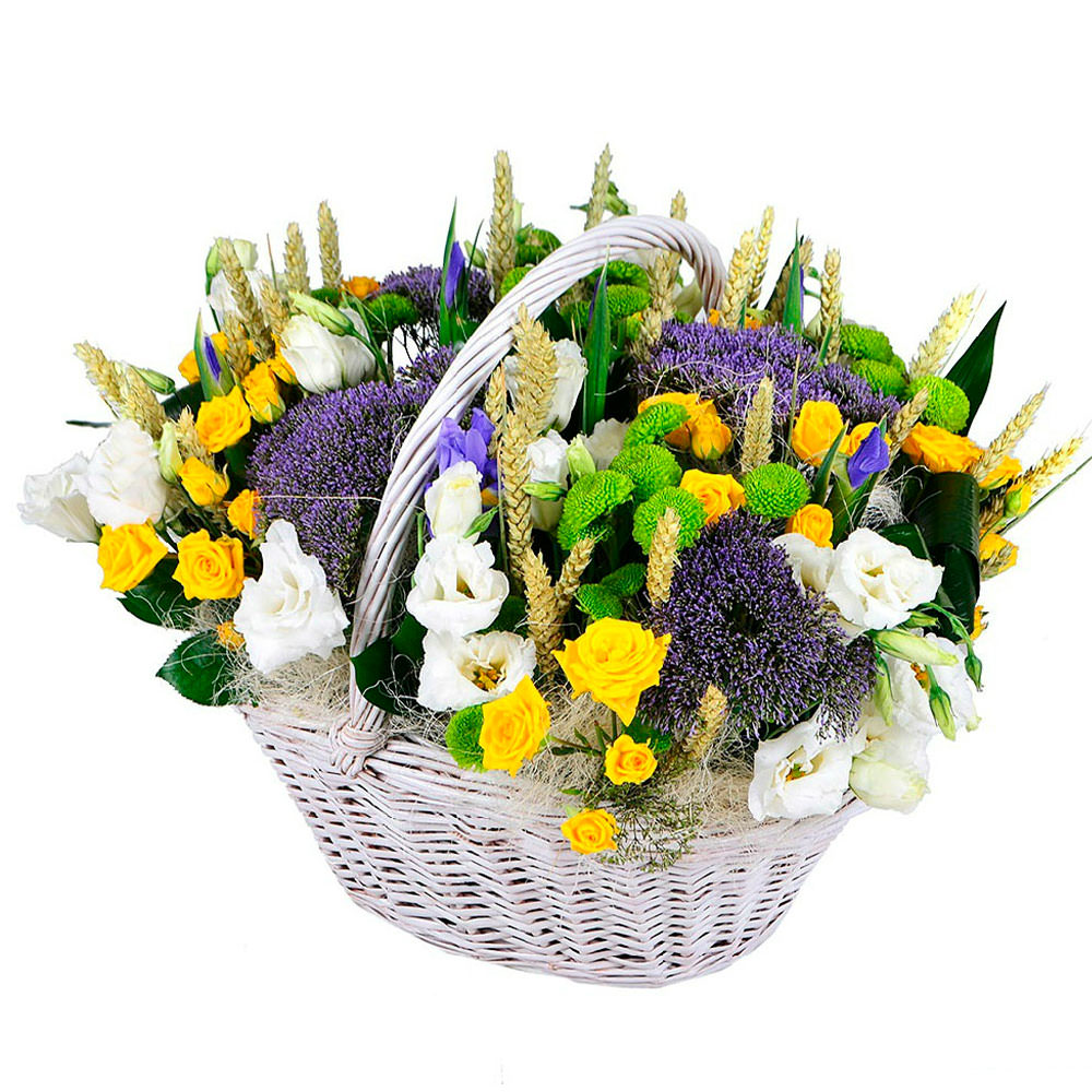 Цветы в корзинке «Летняя лужайка» с доставкой по г Мирный (Архангельская обл): вы можете купить букет в цветочном гипермаркете «Флормания» по цене от 3590 руб.