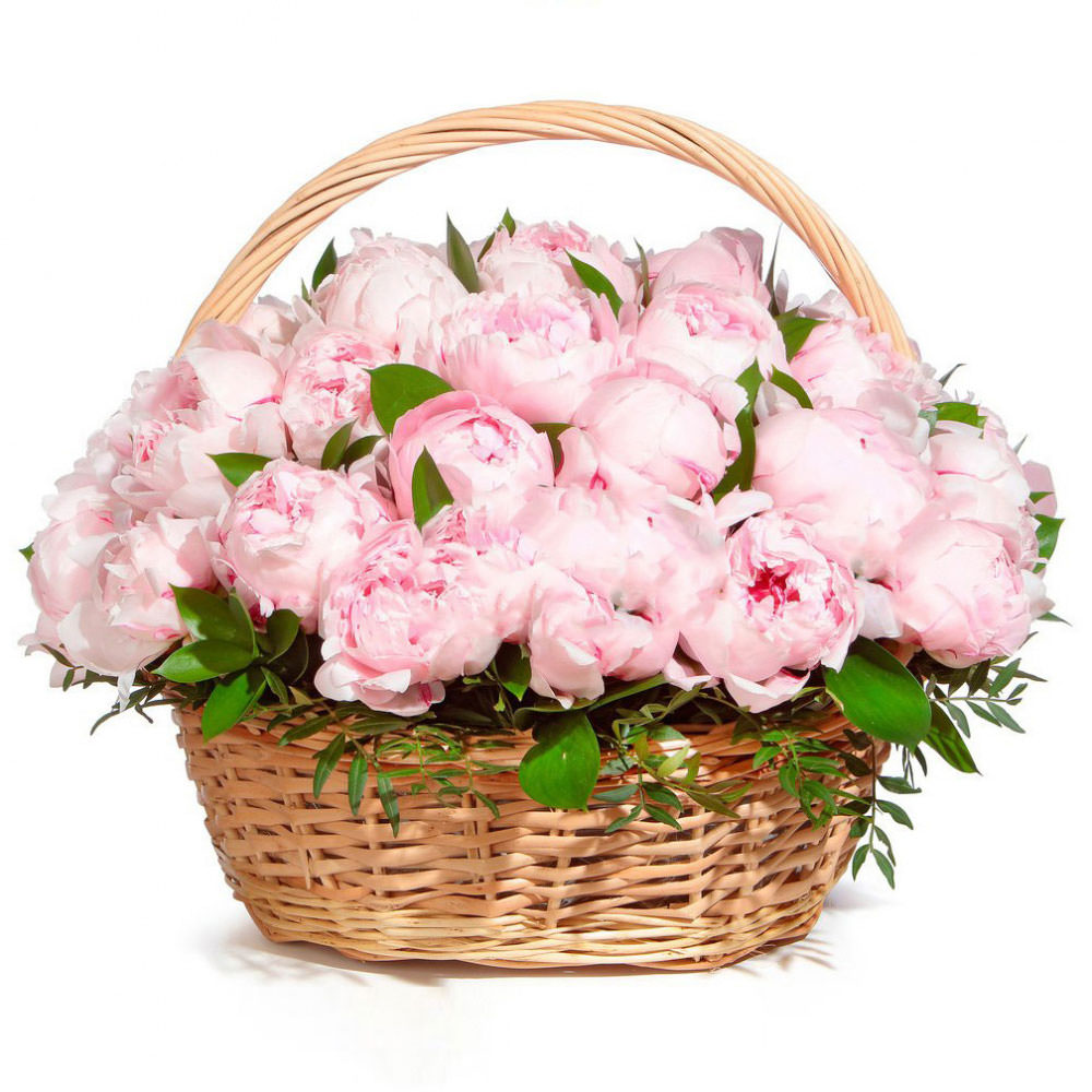 Пион розовый, фисташка. Упаковка (Корзина, оазис).