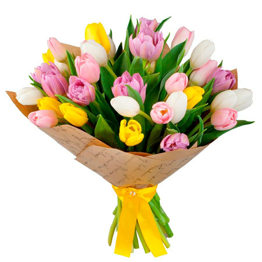 Тюльпан белый, желтый, розовый.